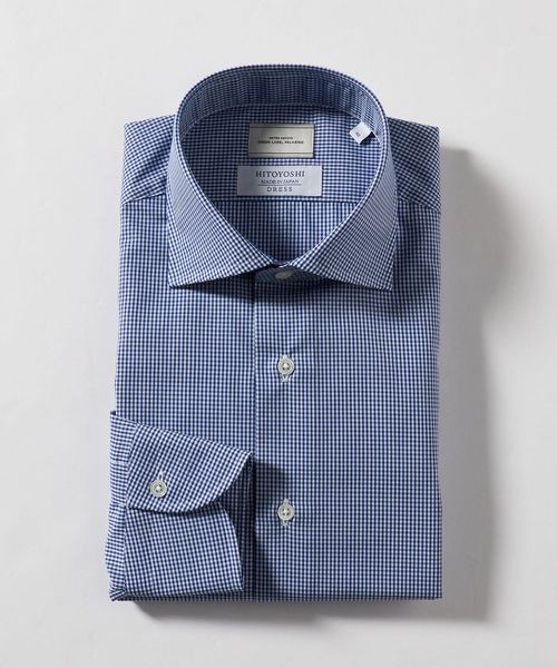 MADE BY HITOYOSHI ギンガムチェック ワイドカラー ドレスシャツ