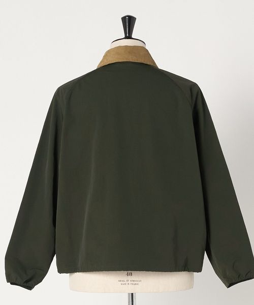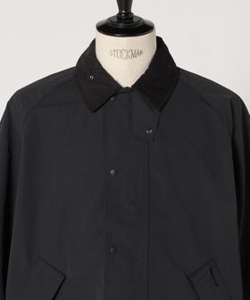ベビーコーデュロイ素材の襟元に、ジップフロント+スタッド付き前立てを採用。