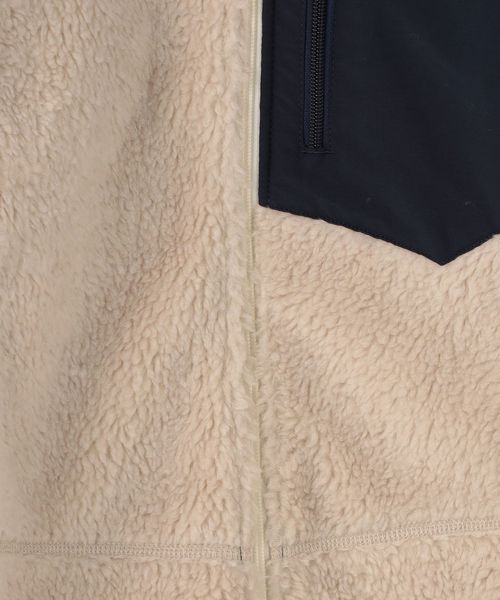 ・縦型ジッパー式チェストポケットが1つ。起毛ポリエステル・メッシュの裏地付きジッパー式ハンドウォーマーポケットが2つ