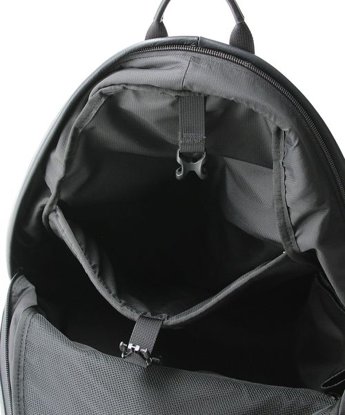 ・内側のサイドには500mlのペットボトルや、折りたたみ傘などを収めることができるホルダー付き。