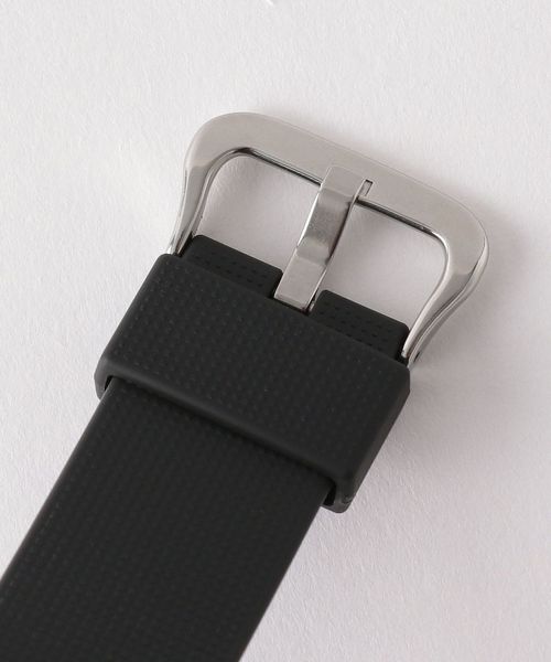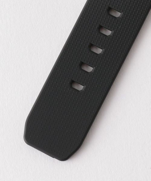 更にバンドには徐々に変化するチェッカーパターンのテクスチャをさりげなく入れ、カジュアルな印象の樹脂バンドに上質感をプラスしています。