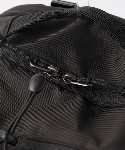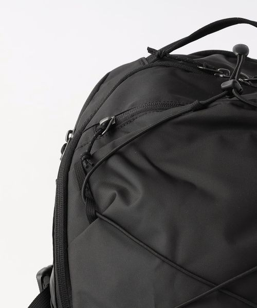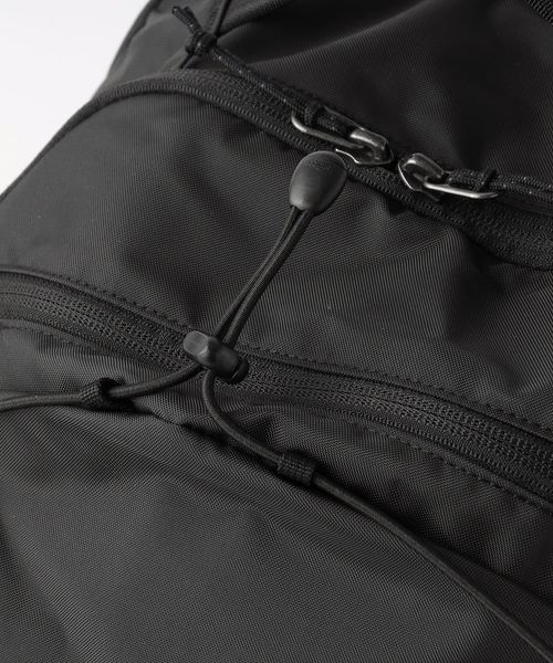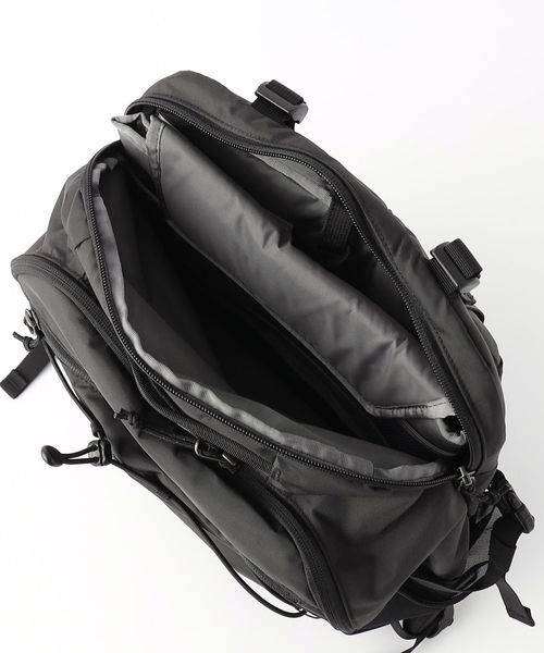 ・机上用品専用コンパートメント、レフュジオ製品の中で最大のメインコンパートメント、上部のジッパー式アクセサリーポケットに中身を整頓して収納でき、使用頻度の高いアイテムを手近に収納可能。外側に伸縮性コード付き