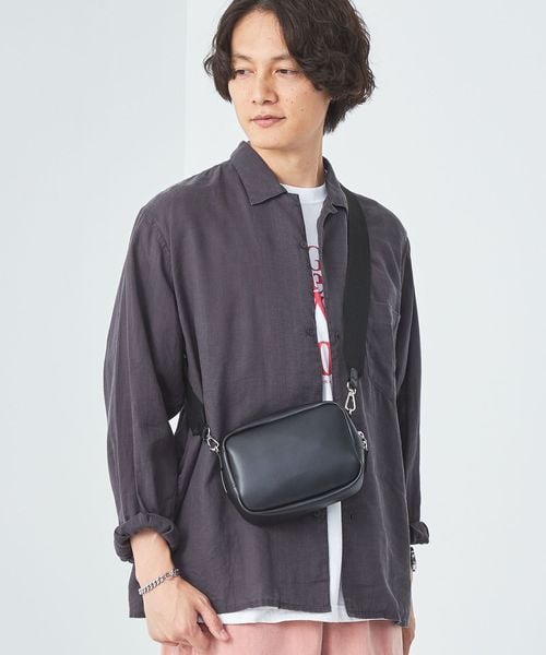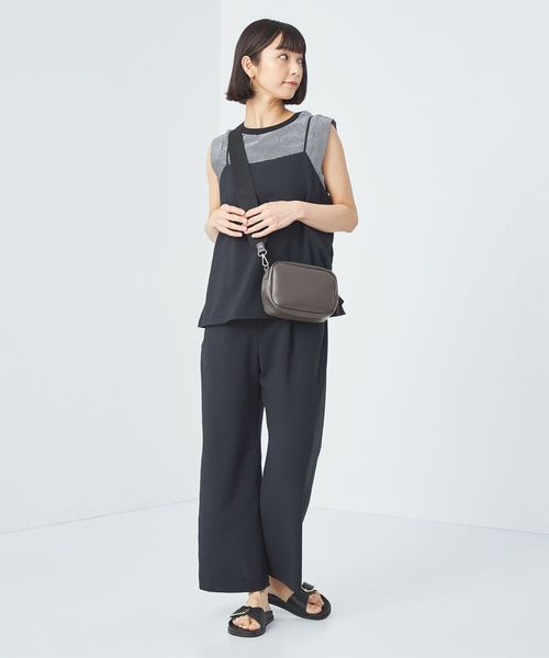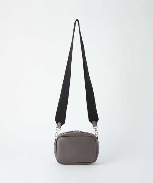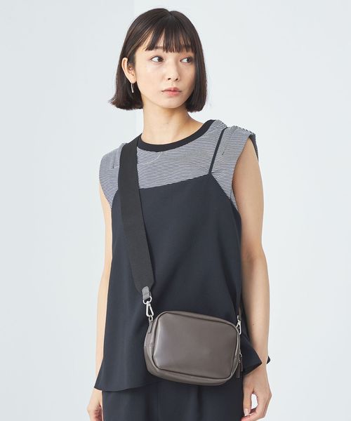 バッグのサイズ感と太めのストラップのコントラストも◎。