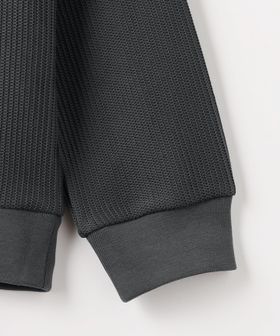 袖と裾はリブ付き仕様で、スウェットとニットの中間のような印象。