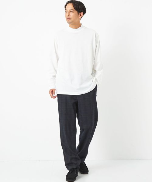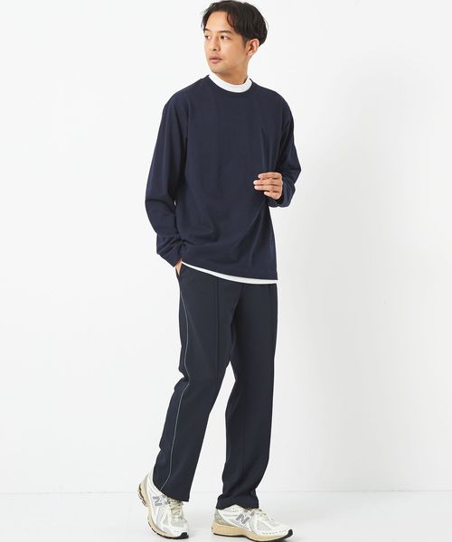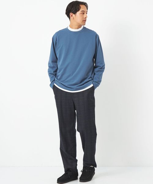 セットでの着用で丁度良くレイヤードされる、ネックと裾部分がポイント。