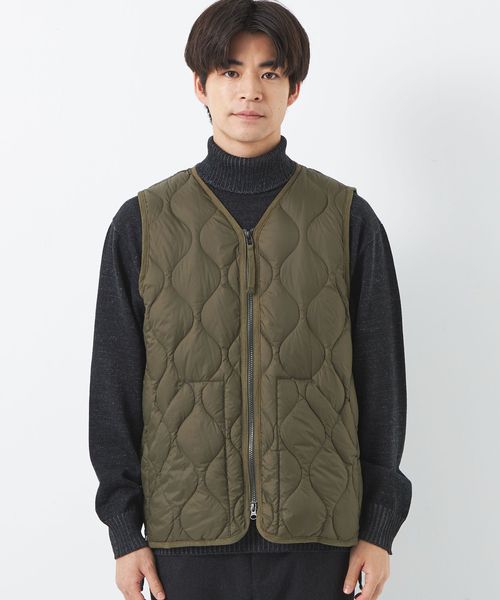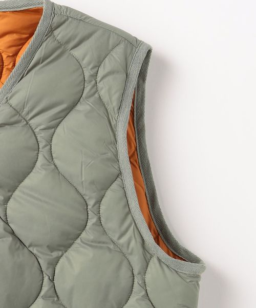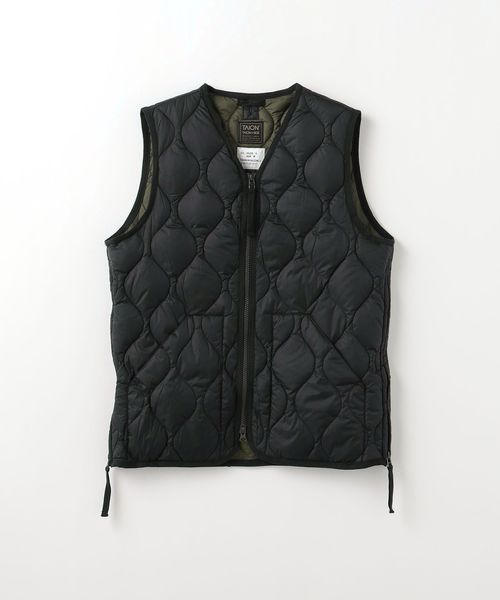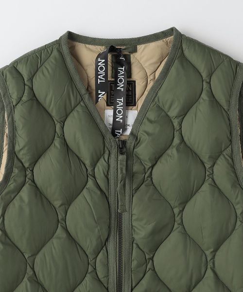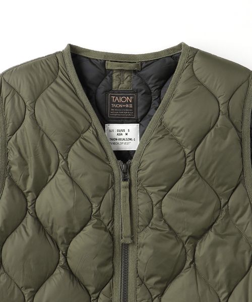 <TAION>ミリタリー Vネック ダブルジップ ダウンベスト