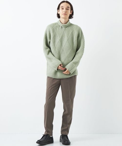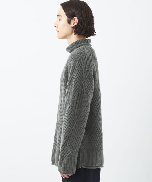 ややゆとりのあるシルエットの、ハイネックニットです。