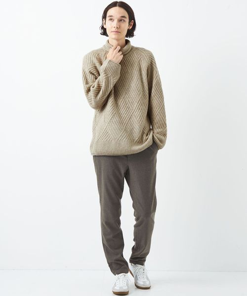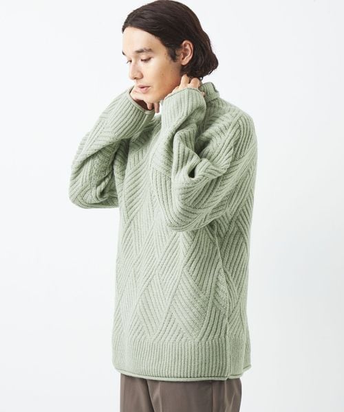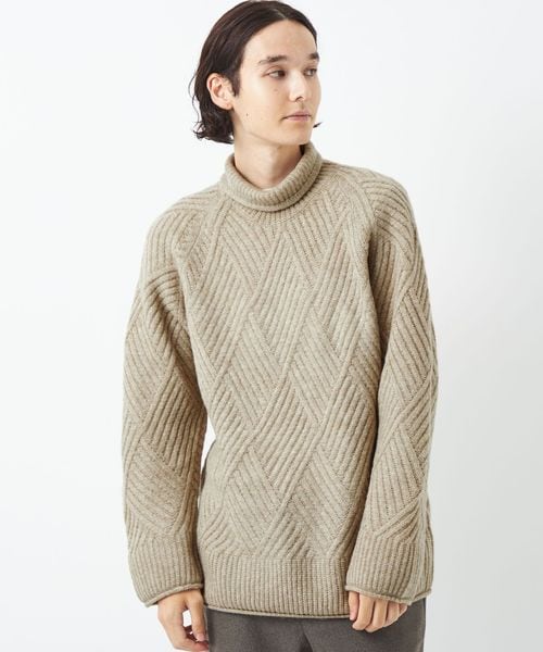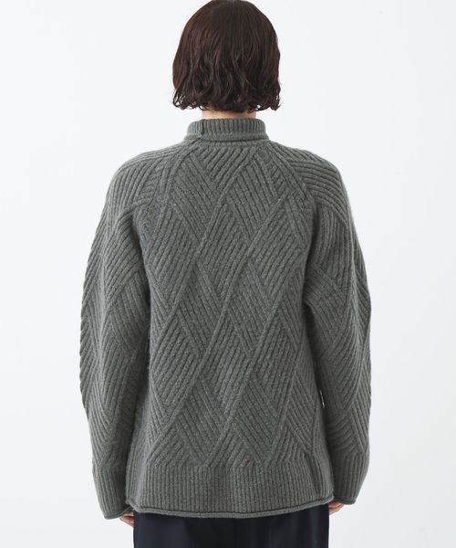 ダイヤ状にクロスした立体感のある編み柄がデザインポイント。