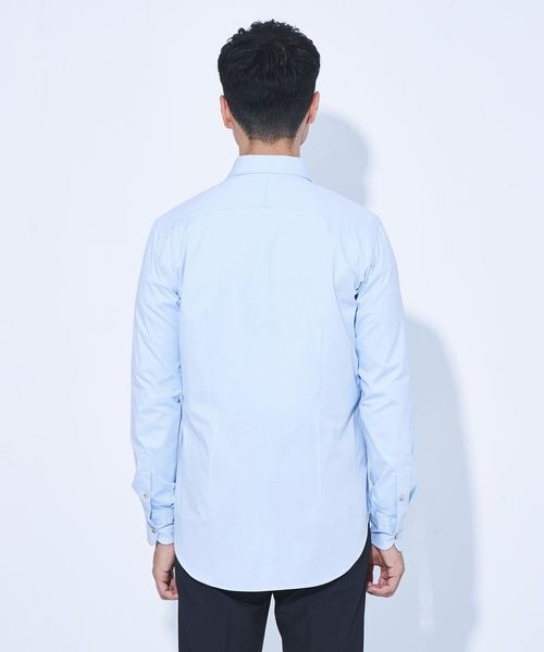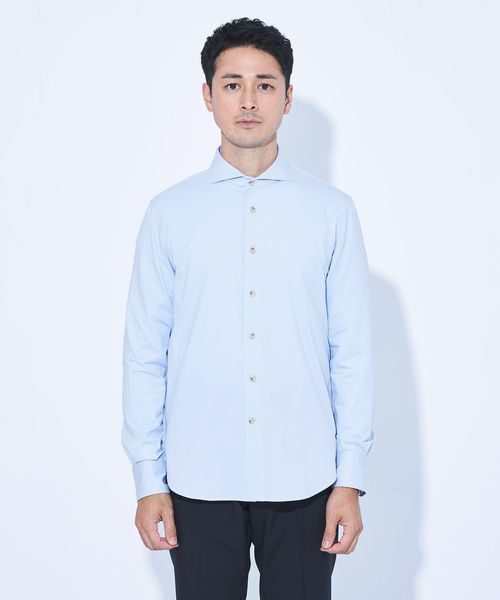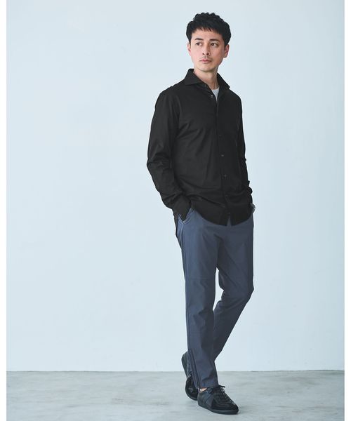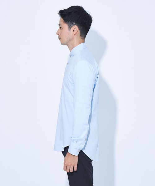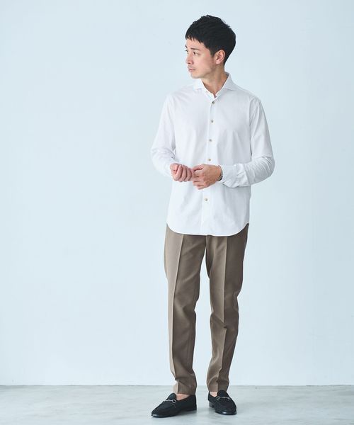 細身のシルエットで仕上げた大人ごなしな雰囲気の長袖シャツ。