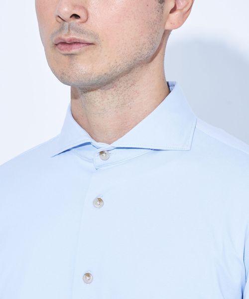 カッタウェイ型の襟を採用し、首回りがスッキリとした印象。
