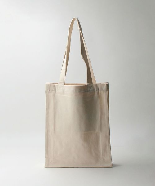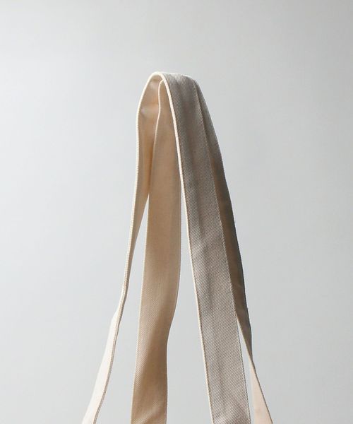 ナチュラルベージュのデニム製縦長トートバッグ。