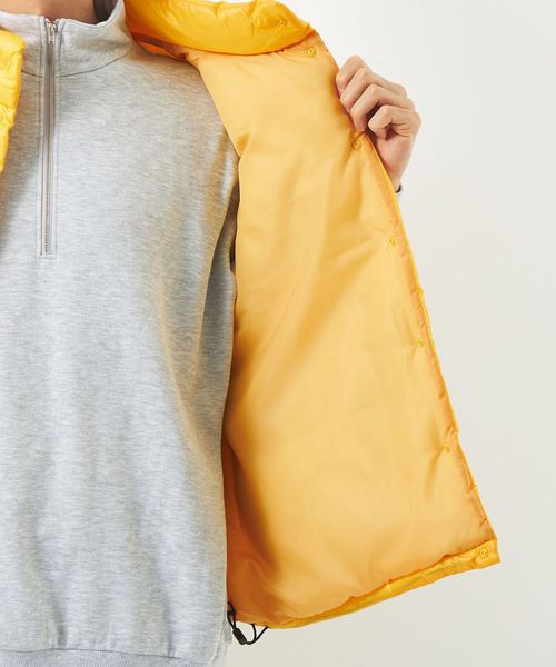 季節の変わり目に軽く羽織れる中綿ベストです。