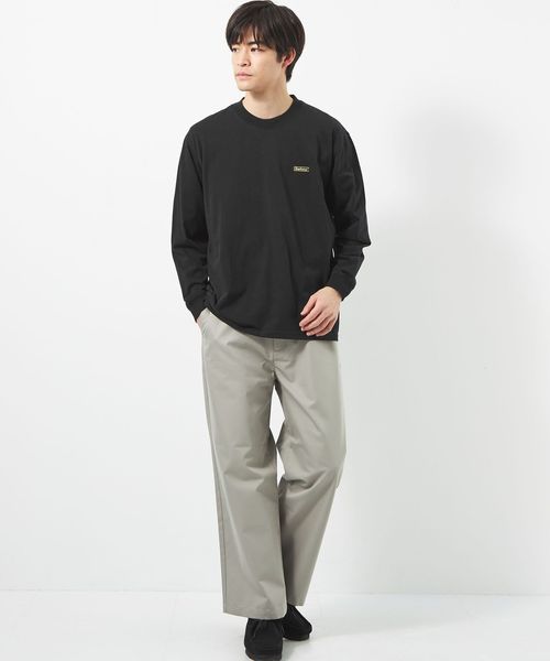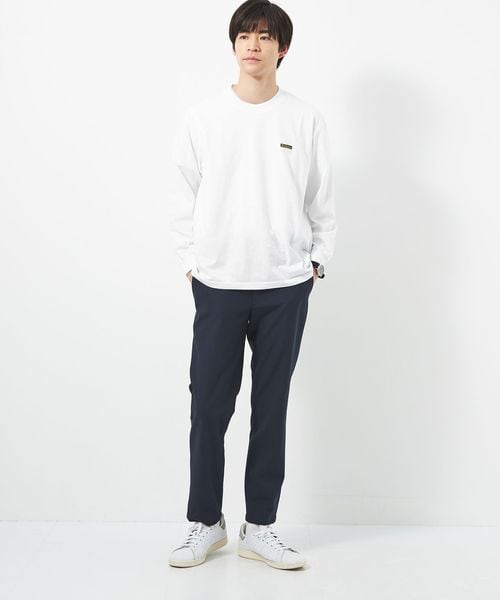 胸元のブランドロゴがアクセントを効かせた長袖Tシャツ。