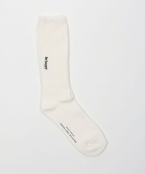 「Be happy」の刺繍を施したメッセージ入りリブソックスです。