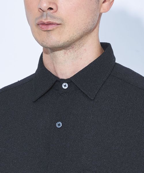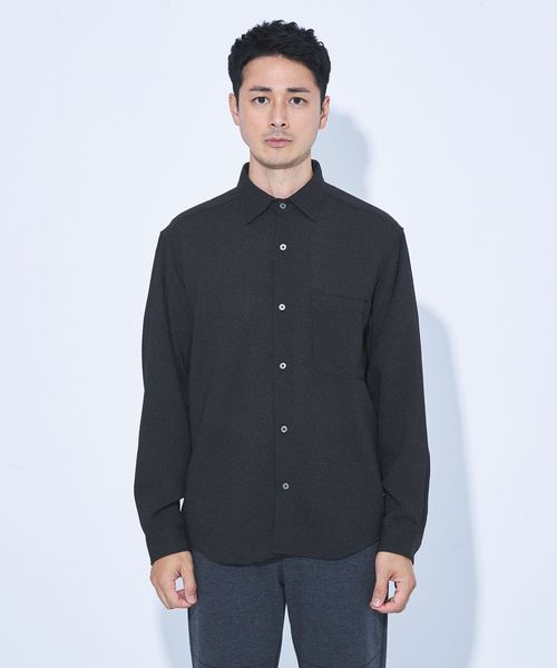 程よくゆとりを持たせたシルエットで仕上げたツイードライクな生地の長袖シャツ。