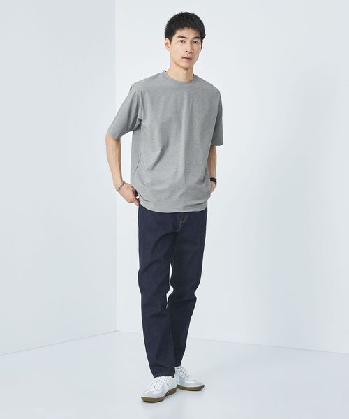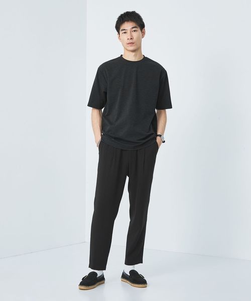 スラックスやテーパードパンツなど、キレイメなボトムスと合わせると品よく仕上がります。