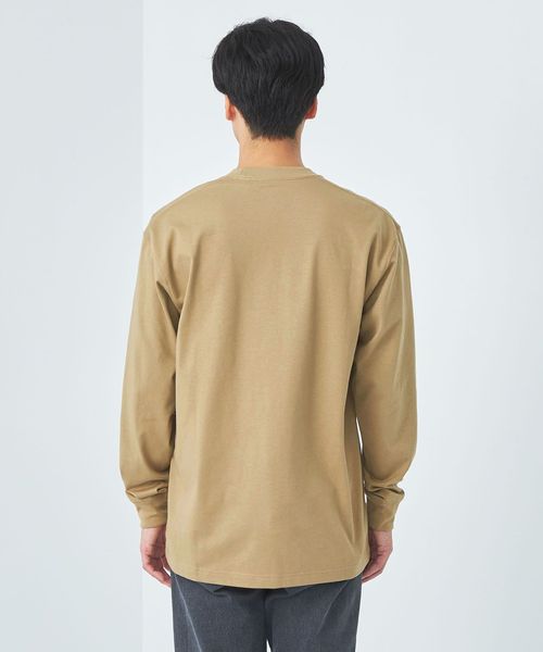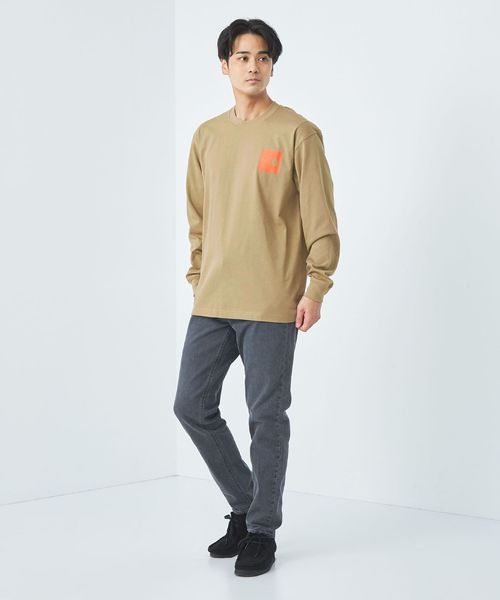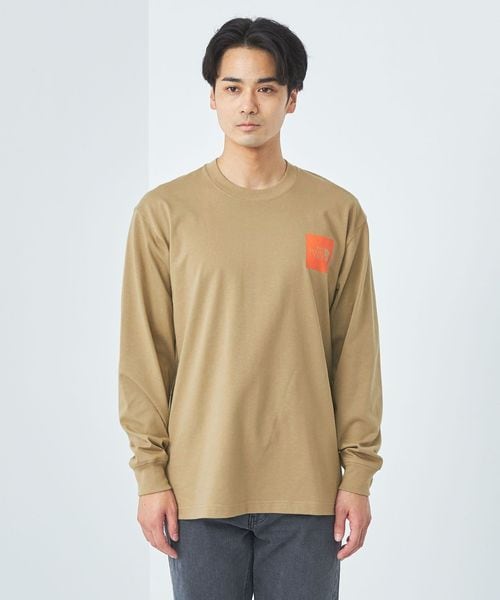 左胸にスクエアロゴを配置した、シンプルなデザインの長袖Tシャツです。