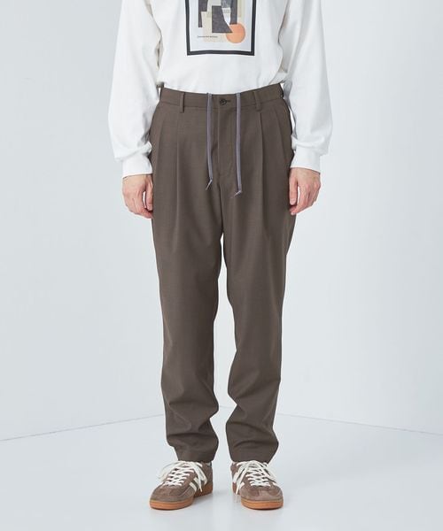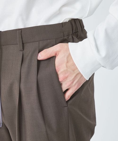 ゆとりのある2プリーツで、裾に向かって細くなっていくテーパードシルエットです。