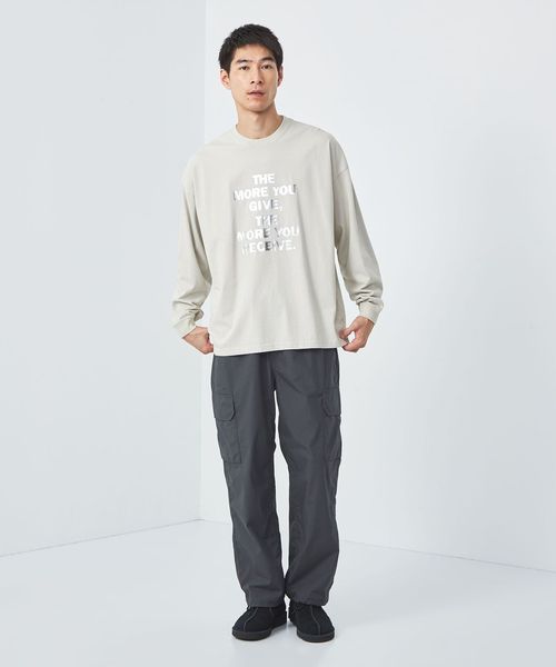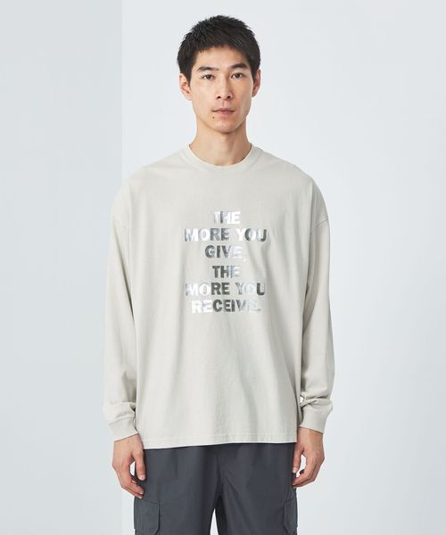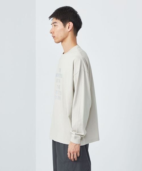 ドロップショルダーでゆとりのあるシルエットの長袖Tシャツ。