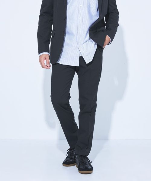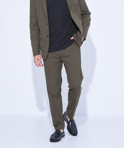 上下とも程よく細身なシルエットで仕上げているので、カジュアル使いからドレスカジュアルまで幅広く活躍します。