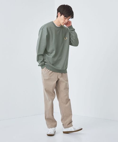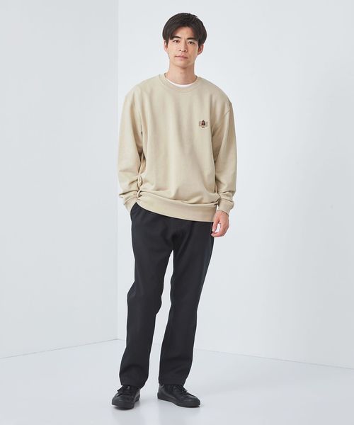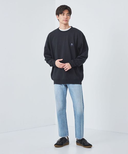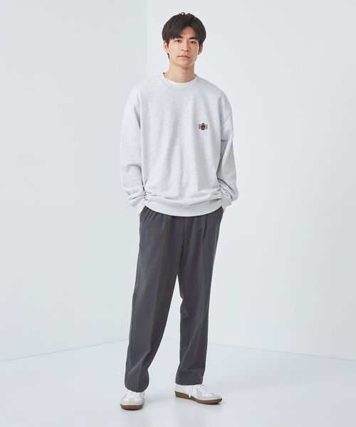 モダンなゆとりのあるボディを採用し、一枚でもさまになるワンポイントスウェットです。