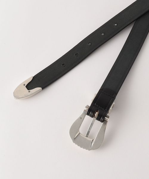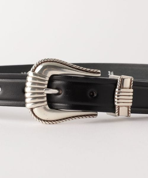 ウエスタン調のバックルが特長的なシルバーバックルベルト。
