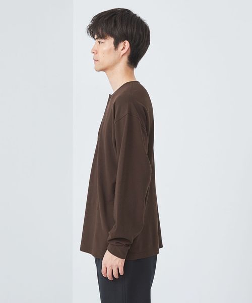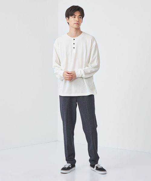 ややゆとりのあるシルエットのヘンリーネックTシャツです。