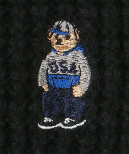 かわいらしいアメカジ風のベア刺繍とレザーパッチがさりげないアクセントに。
