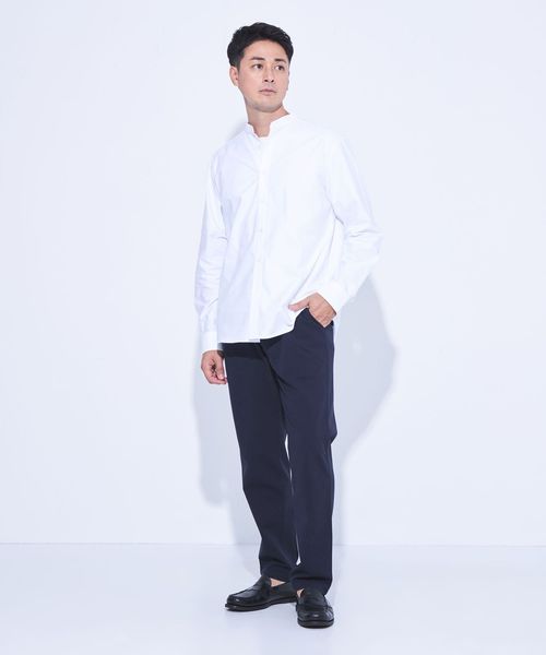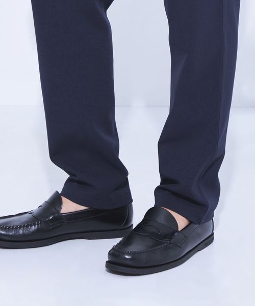 シャツや革靴を合わせた品の良い着こなし方もいい感じ。