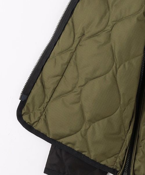 フロントのダブルジップや両脇のスリットファスナーにより、レイヤードを楽しんでいただけます。