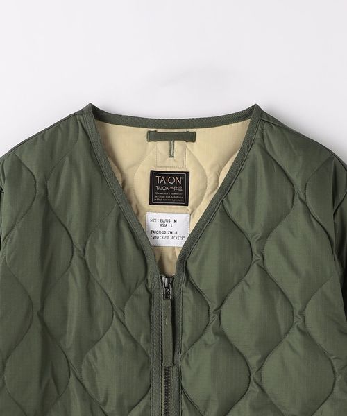 <TAION>ミリタリー Vネック ジップ ダウンジャケット
