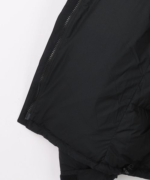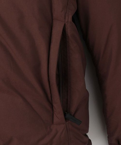 フロントはダブルフラップ仕様で、ダウンをたっぷりと封入したフードは頭部をしっかり覆うことができる大きめの設計で、ドローコードで調節が可能。