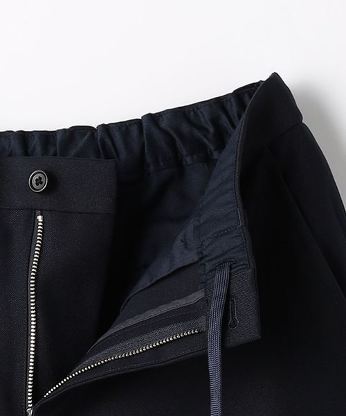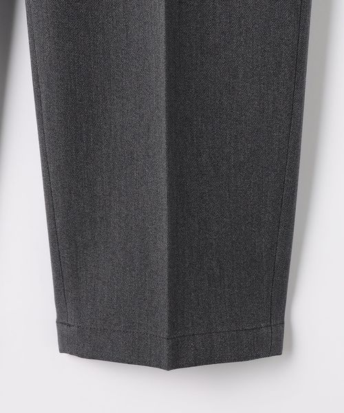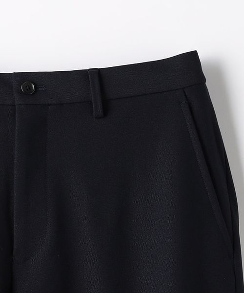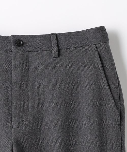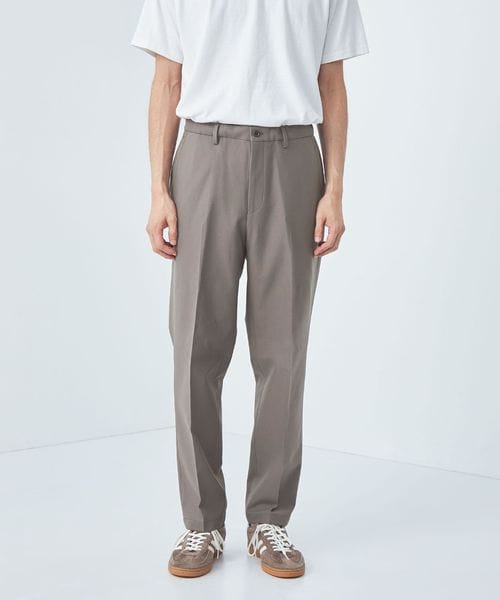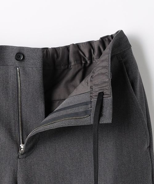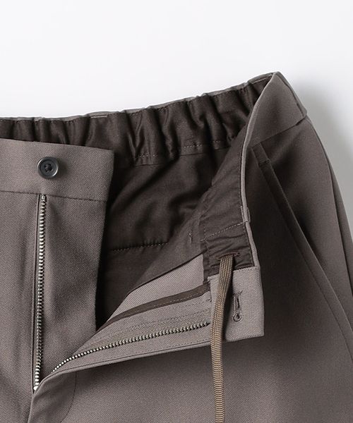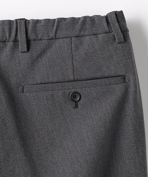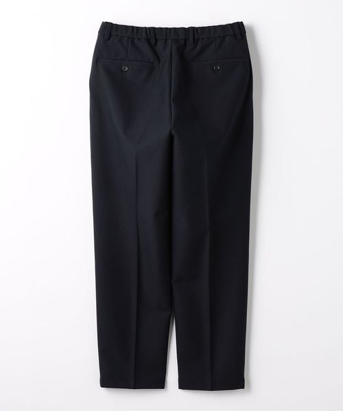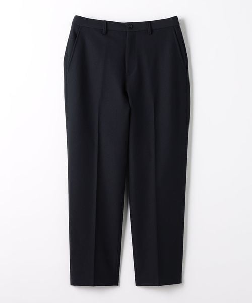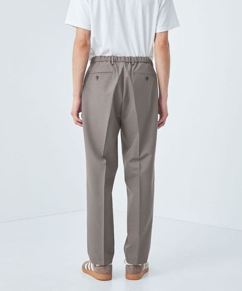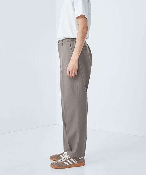 ノープリーツながらも腰回りや渡り、もも回りにゆとりをもたせたワイドテーパードパンツです。