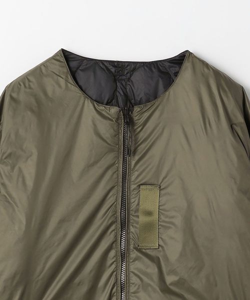 表側はフラットなMA-Iタイプ仕様、裏面はヘチマダウンキルトを配したダウンカーディガン、リバーシブルで着用できるのが嬉しいポイントです。