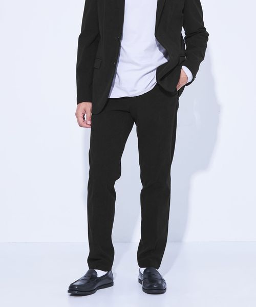 上下とも程よく細身なシルエットで仕上げているので、カジュアル使いからドレスカジュアルまで幅広く活躍します。