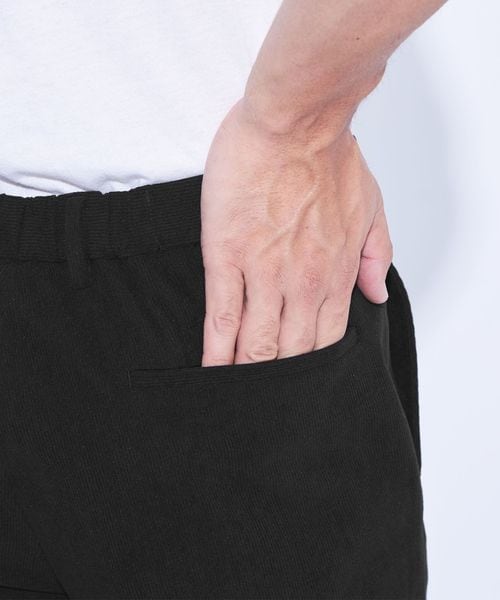 ポリエステル素材のトリコットコーデュロイ生地を使用。