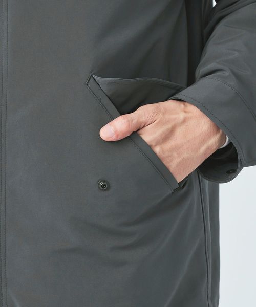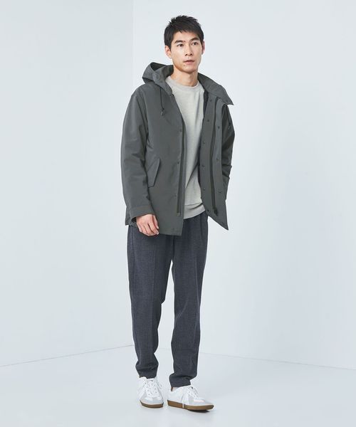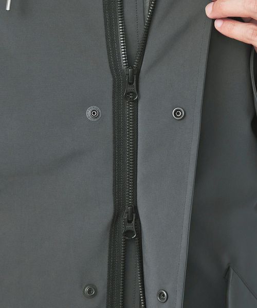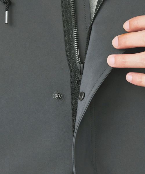 フロントはジッパー+ボタンの比翼仕立てで、裾部分のドローコードを絞れば風の侵入を抑え、シルエットの変化も演出。