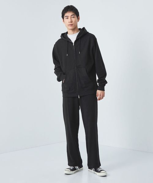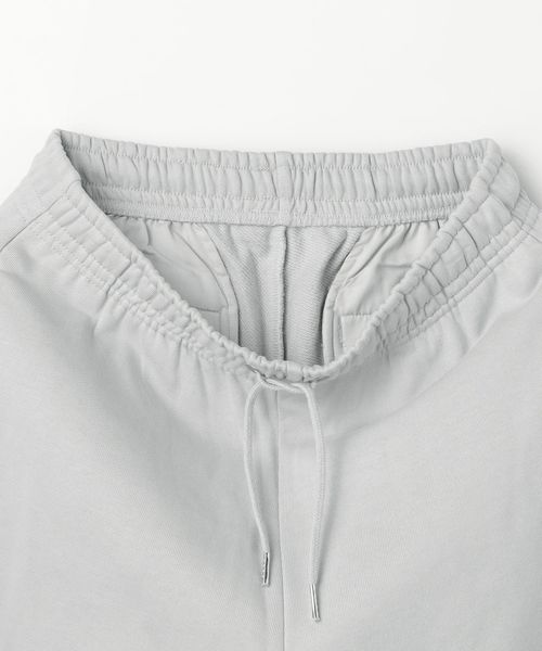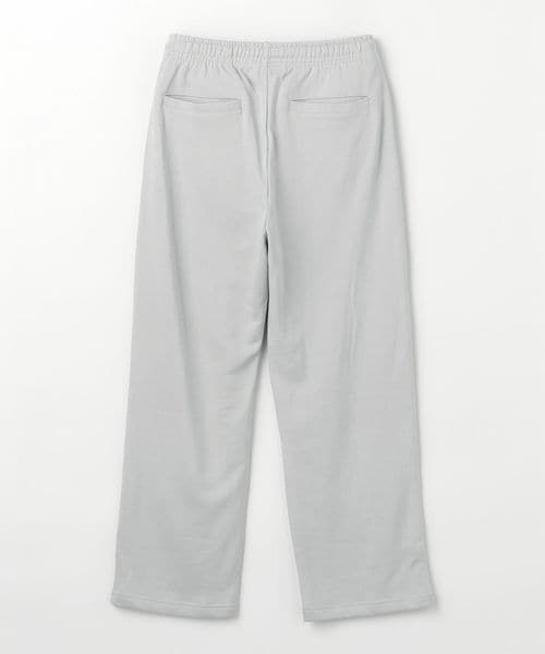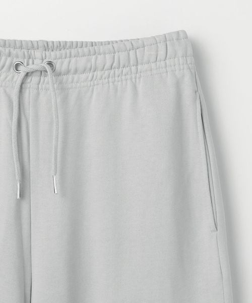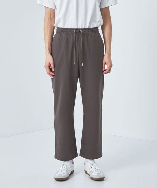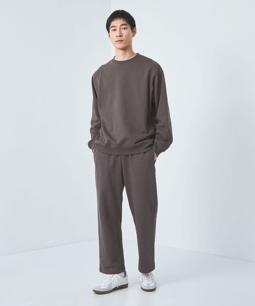 スウェットパンツがラフなので、トップスはクリーンな素材を合わせてメリハリを付けるとバランスよくまとまります。