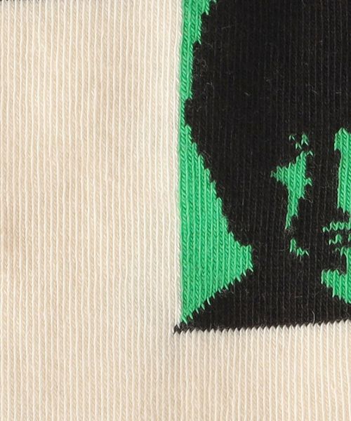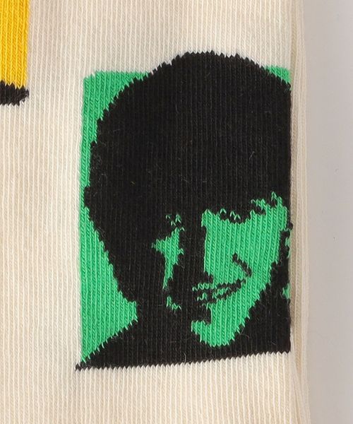 伝説の4人組ロックバンドのイラストをデザインしたクルー丈ソックス。