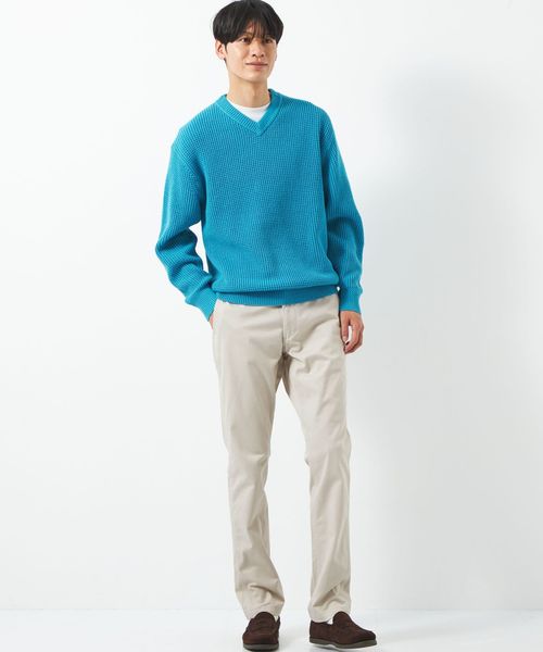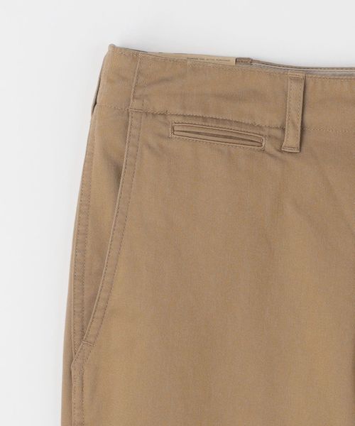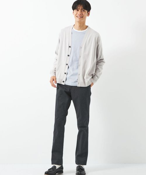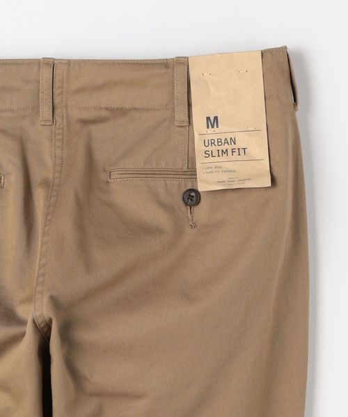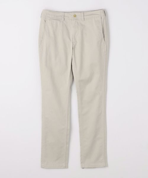 定番で着回しの利く、スリムシルエットのチノパンです。