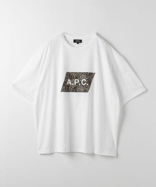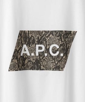 パイソン柄の上にA.P.C.ロゴ入りコットンTシャツ。