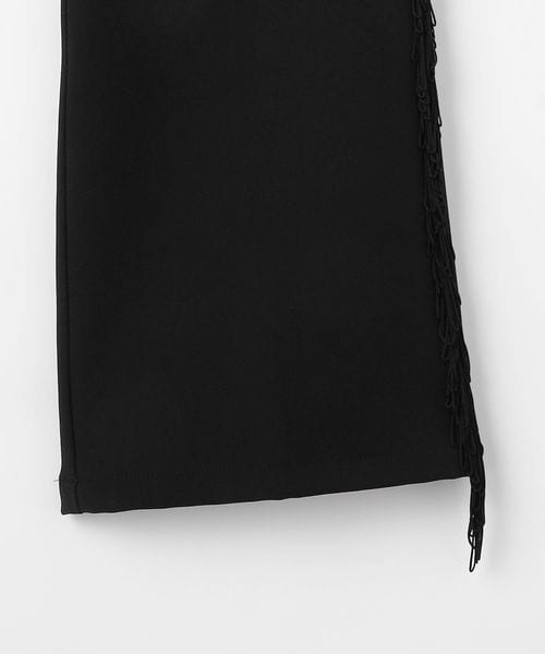 スポーティなトラックパンツをベースに、サイドからバックにかけフリンジ飾りをアレンジしたユニークな一本。