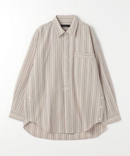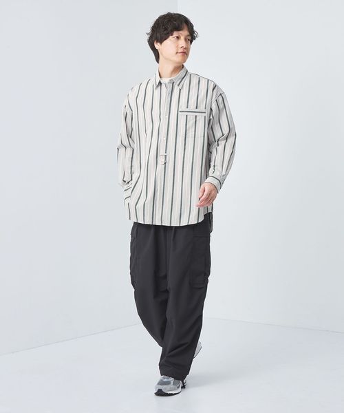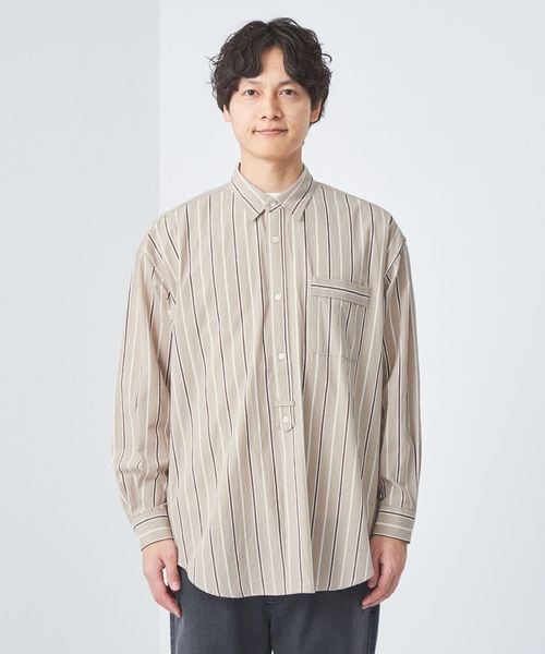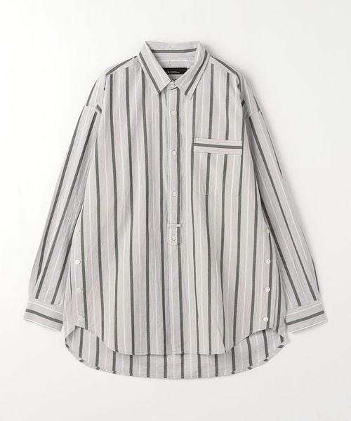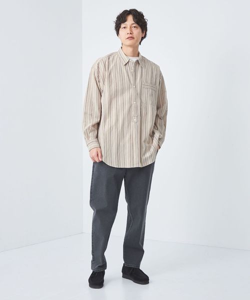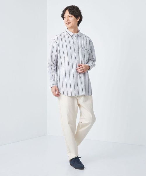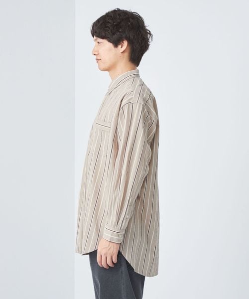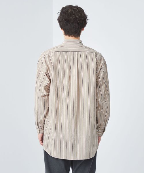 先染めマルチストライプ柄で織り上げたビッグシルエットシャツ。