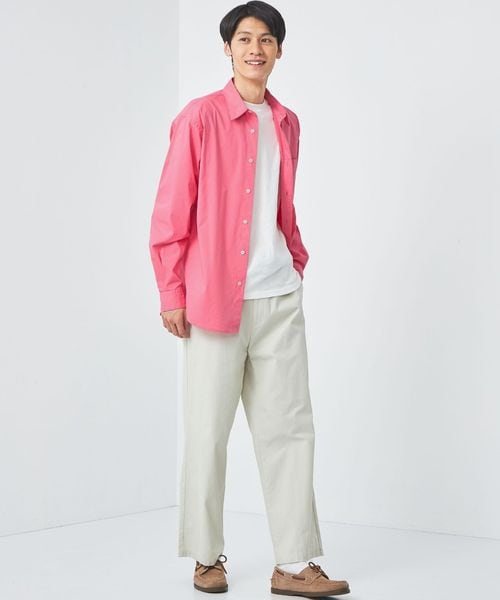 PINKカラーはスタイリングの主役として目を惹くので、ホワイトパンツや淡い色合いのボトムスと合わせると春夏らしくまとまります。