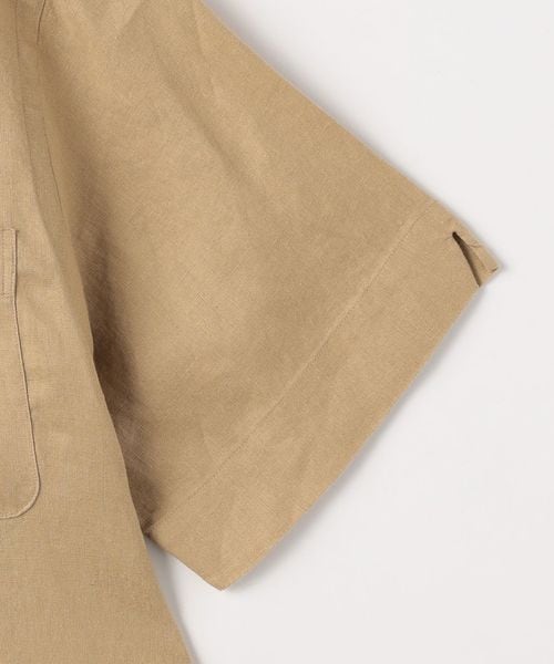薄手の麻を使用し、暖かい季節でも快適な着心地をキープするキャンプシャツ