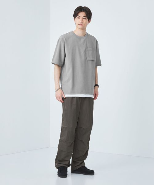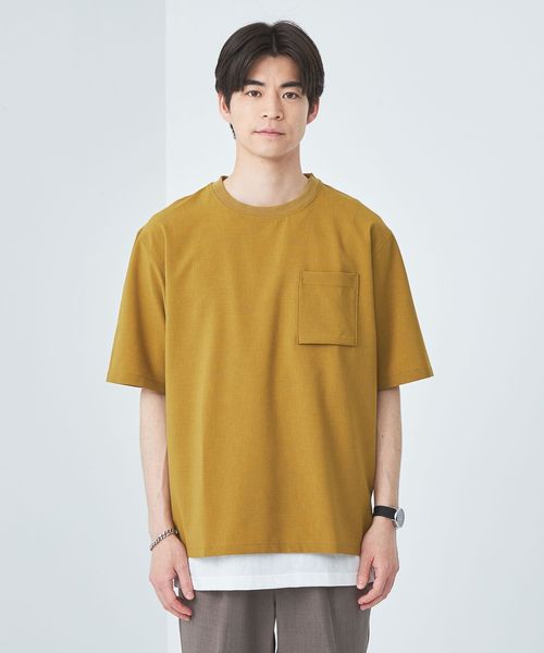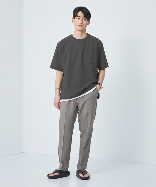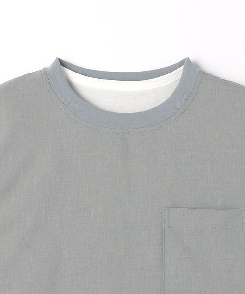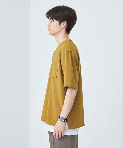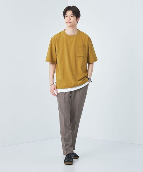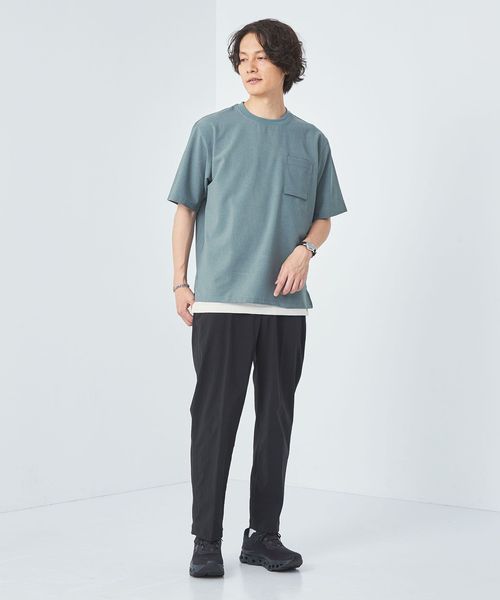 Tシャツはシンプルなポケット付きでクリーンな印象。