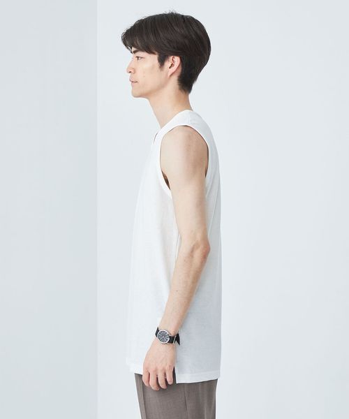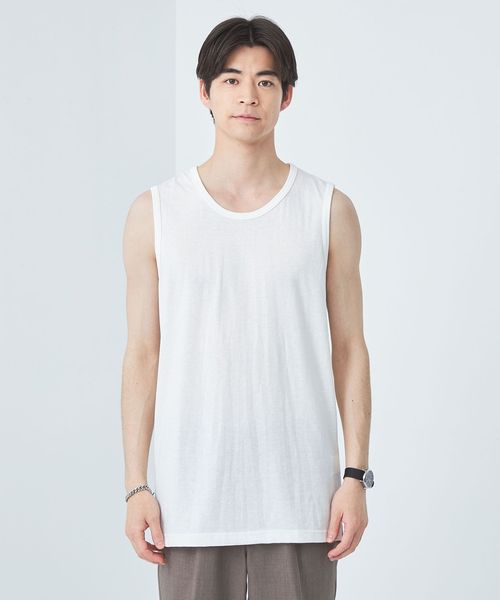 タンクトップは着丈をやや長めに設定し、レイヤードしやすいサイズ感です。