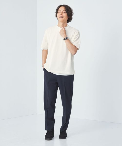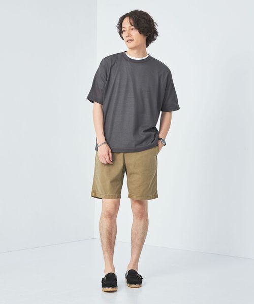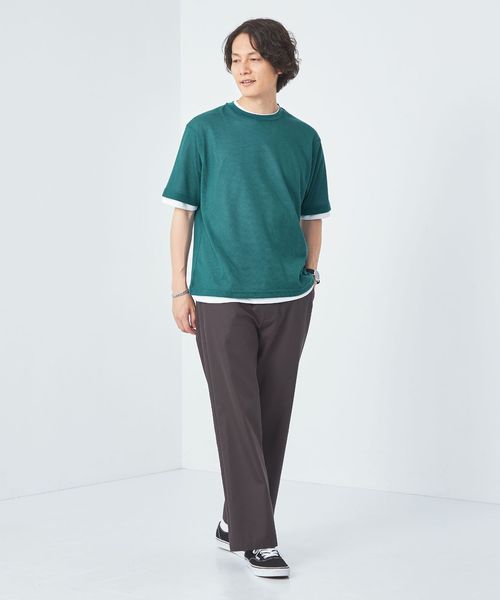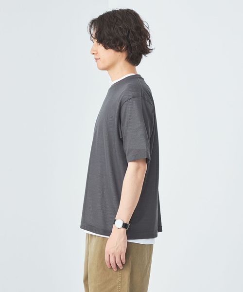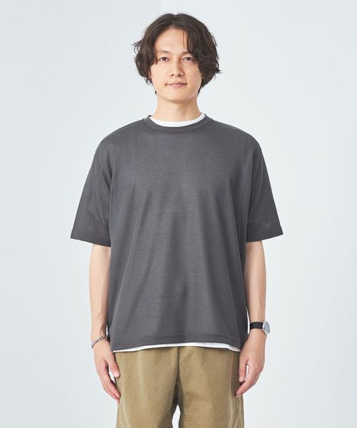 ルーズめなシルエットメッシュTとレギュラーサイズの天竺Tのバランスが◎。