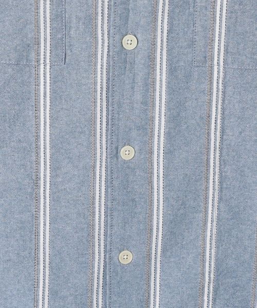 平織の無地とドビー折りの柄を掛け合わせた、オリジナルのマルチストライプ柄。