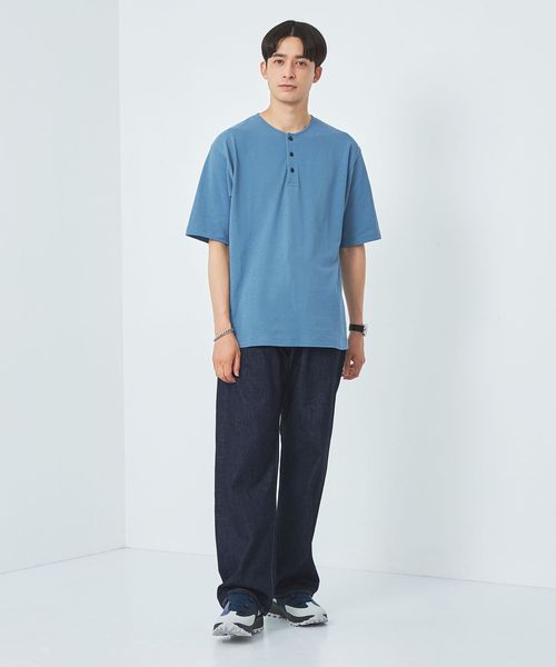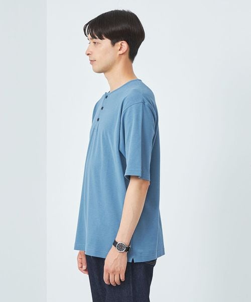 ややゆとりのあるリラックスシルエットのヘンリーネックTシャツです。
